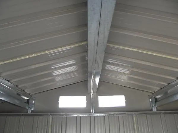 Doté d'une charpente solide et de parois de 2,5/10ème mm, cet abri résiste aux intempéries. Le toit à double pente assure une évacuation rapide de l'eau de pluie.