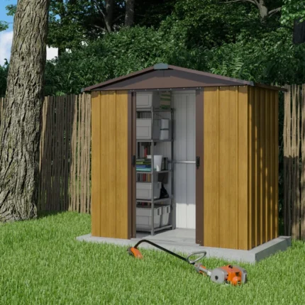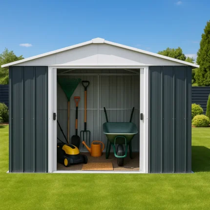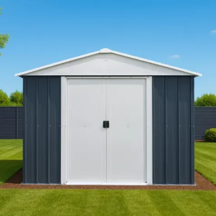 Abri de Jardin Métal 5,8 m² – Gris Châtaigne et Kit d’Ancrage