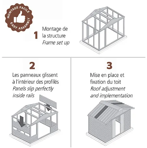 | Type de toit | Double pente (Avec panneaux translucides) |