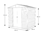 L'abri de jardin Yardmaster de 5,30 m² (5,11 m² utiles) est conçu pour ceux qui ont besoin de hauteur. Contrairement aux modèles standards, ce modèle dispose de murs de 1,80 m de haut, offrant un volume de stockage supérieur pour ranger des outils longs, des étagères hautes ou du matériel encombrant sans gêne.