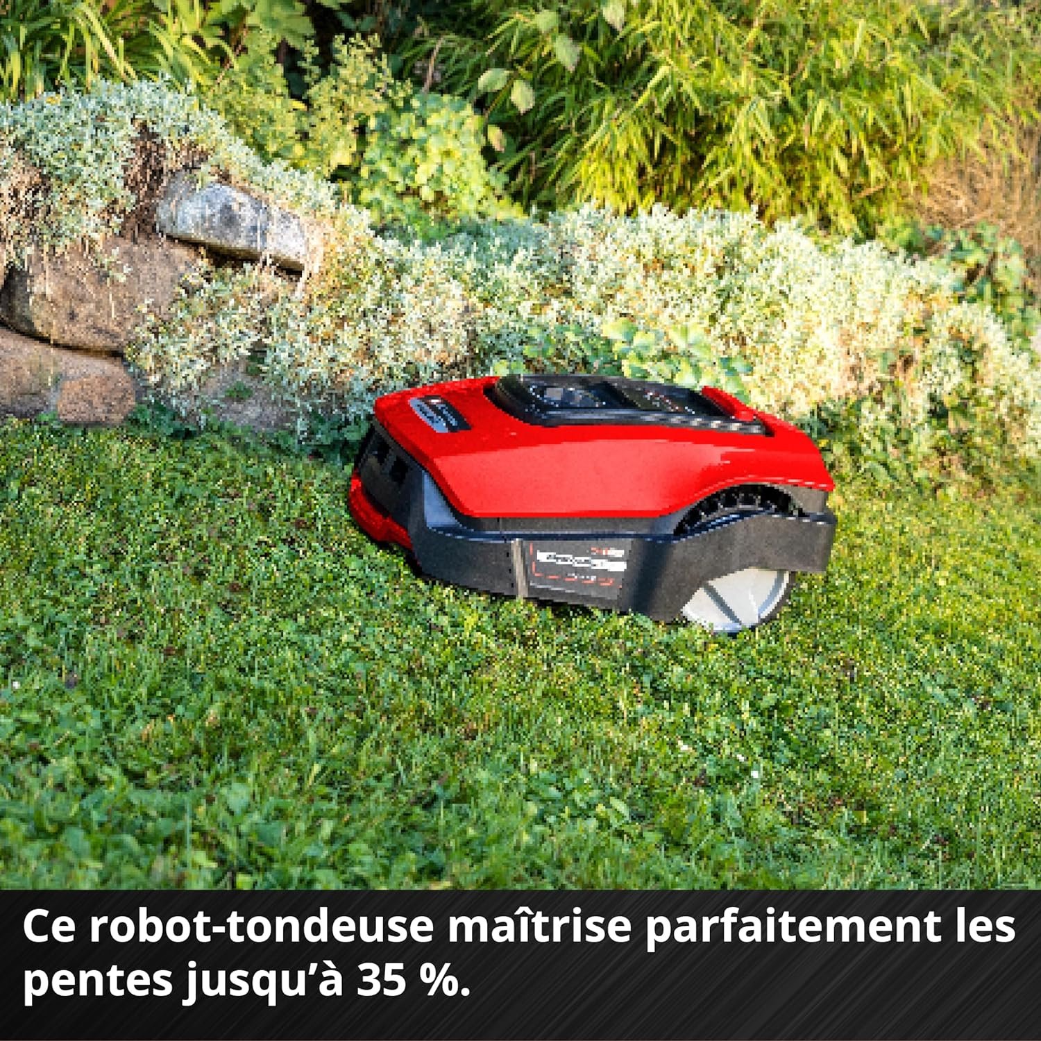Conçu pour les jardins complexes, ce modèle gère efficacement les terrains sinueux grâce à son mode multizones et franchit des pentes jusqu'à 35 %. La programmation est simplifiée grâce à une double interface : via l'application mobile (Bluetooth) ou directement sur le robot grâce à son écran LCD intuitif.