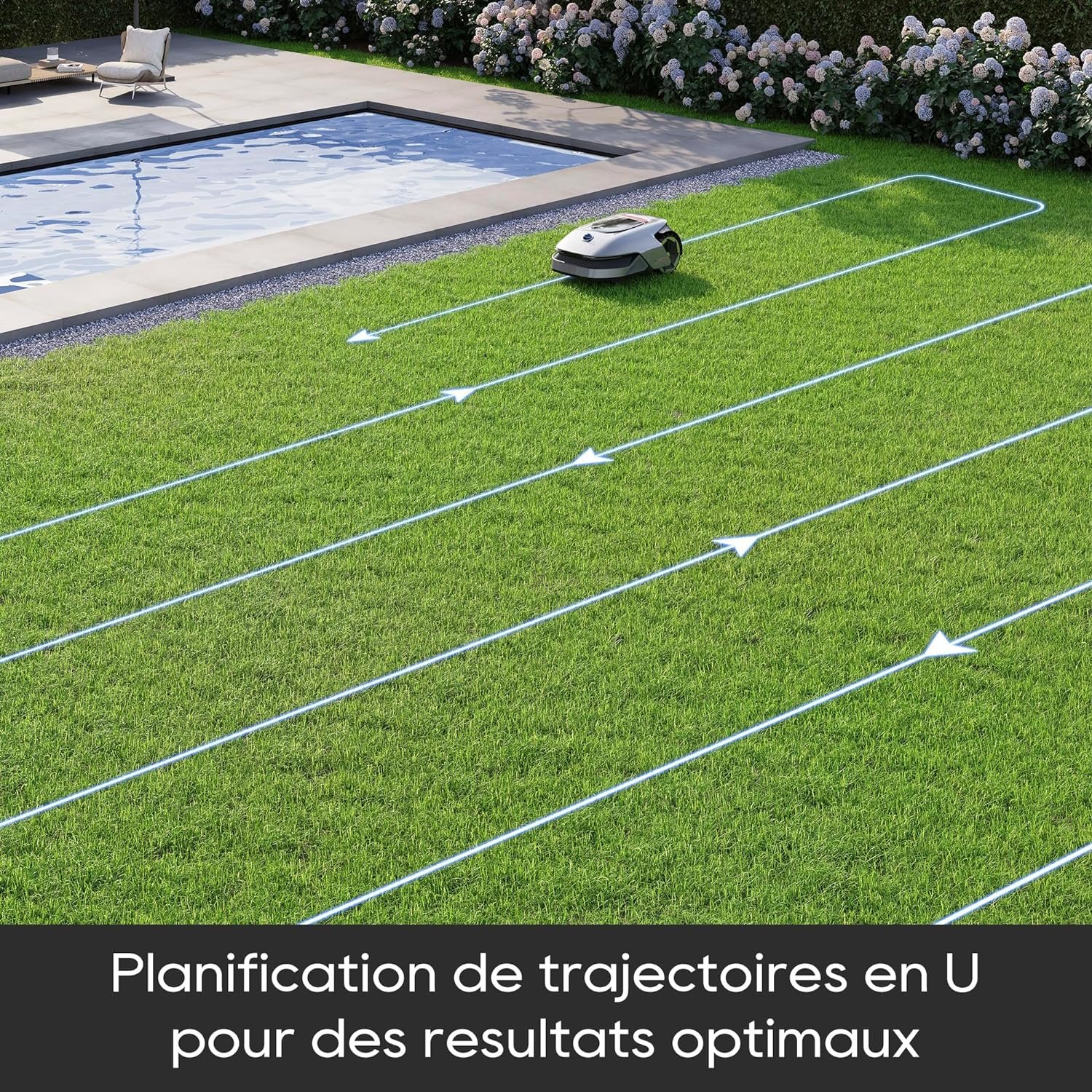 - Efficacité : Trajectoire de tonte en U pour un rendu uniforme sans oublis.